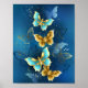 Zusammensetzung aus Fliegen, Schmuck, Gold und dunklen Schmetterlingen auf texturiertem Schmuckhintergrund. Goldener Schmetterling.
