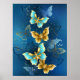 Zusammensetzung aus Fliegen, Schmuck, Gold und dunklen Schmetterlingen auf texturiertem Schmuckhintergrund. Goldener Schmetterling.