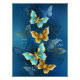 Zusammensetzung aus Fliegen, Schmuck, Gold und dunklen Schmetterlingen auf texturiertem Schmuckhintergrund. Goldener Schmetterling.