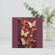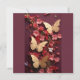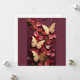 Eine lebendige Szene mit kunstvoll gestalteten goldenen Schmetterlingen, die sich in einem üppigen, roten Blau anmutig positionieren. Die Schmetterlinge mit ihren detaillierten Flügeln scheinen inmitten der blumigen Anordnung zu flattern.