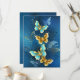 Zusammensetzung aus Fliegen, Schmuck, Gold und dunklen Schmetterlingen auf texturiertem Schmuckhintergrund. Goldener Schmetterling.