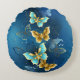 Zusammensetzung aus Fliegen, Schmuck, Gold und dunklen Schmetterlingen auf texturiertem Schmuckhintergrund. Goldener Schmetterling.