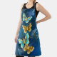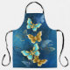 Zusammensetzung aus Fliegen, Schmuck, Gold und dunklen Schmetterlingen auf texturiertem Schmuckhintergrund. Goldener Schmetterling.