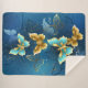 Zusammensetzung aus Fliegen, Schmuck, Gold und dunklen Schmetterlingen auf texturiertem Schmuckhintergrund. Goldener Schmetterling.