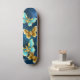 Zusammensetzung aus Fliegen, Schmuck, Gold und dunklen Schmetterlingen auf texturiertem Schmuckhintergrund. Goldener Schmetterling.