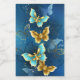 Zusammensetzung aus Fliegen, Schmuck, Gold und dunklen Schmetterlingen auf texturiertem Schmuckhintergrund. Goldener Schmetterling.