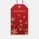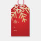 Goldene Schneeflocken auf roten Weihnachtsgeschenk Geschenkanhänger