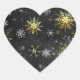 Goldene Schneeflocken auf schwarzem Hintergrund Herz-Aufkleber