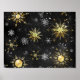 Goldene Schneeflocken auf schwarzem Hintergrund Poster