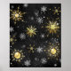 Goldene Schneeflocken auf schwarzem Hintergrund Poster