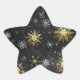 Goldene Schneeflocken auf schwarzem Hintergrund Stern-Aufkleber