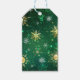 Goldene Schneeflocken im grünen Hintergrund Geschenkanhänger
