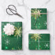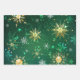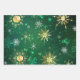 Goldene Schneeflocken im grünen Hintergrund Geschenkpapier Set