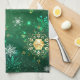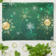 Goldene Schneeflocken im grünen Hintergrund Geschirrtuch