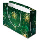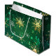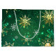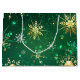Goldene Schneeflocken im grünen Hintergrund Große Geschenktüte
