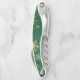 Goldene Schneeflocken im grünen Hintergrund Kellnermesser