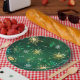 Goldene Schneeflocken im grünen Hintergrund Pappteller