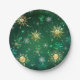 Goldene Schneeflocken im grünen Hintergrund Pappteller