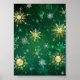 Goldene Schneeflocken im grünen Hintergrund Poster