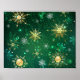 Goldene Schneeflocken im grünen Hintergrund Poster