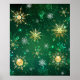 Goldene Schneeflocken im grünen Hintergrund Poster