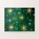 Goldene Schneeflocken im grünen Hintergrund Puzzle