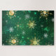 Goldene Schneeflocken im grünen Hintergrund Puzzle