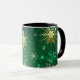 Goldene Schneeflocken im grünen Hintergrund Tasse
