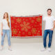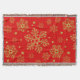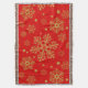 Weihnachtsdesign mit goldenen Schneeflocken und Sternen auf rotem Hintergrund