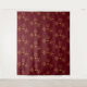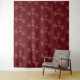 Ein Wandteppich mit einem sich wiederholenden Muster extravaganter goldener Schneeflocken mit eleganten kristallinen Formen. Ein dunkelroter Hintergrund.