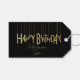 Elegante Imitate Goldschrift lautet "HAPPY BIRTHDAY" vor schwarzem Hintergrund auf diesem stilvollen Geburtstagsgeschenktag.