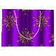 Eine elegante, dekorative lila und goldene Weihnachtsgeschenktüte mit einem luxuriösen Vorbild metallischer Weihnachtsschneeflocken (oder Weihnachtssterne) auf einem stilvollen und festlichen lila Hintergrund.
