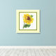 Schöne goldene Sonnenblume in quadratischer Version. Diese hübsche Blume hat reiche Gelbfärbung und Grüntöne für einen frischen Landeffekt. Der Canvas-Druck hat einen weißen Hintergrund mit tiefgrüner und gelber Grenze.