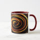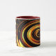 Spirale in hellem Gold, gelb, kupferrot auf schwarzem Hintergrund.