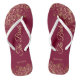 Tanzen Sie die Nacht mit diesen schönen Hochzeitsflip-Flops. Sie sind für die Braut konzipiert und zeichnen sich durch ein schlichtes und elegantes Design aus, das mit goldfarbenen Schriftzeichen auf bordeauxrotem, weinrotem Hintergrund und extravaganten goldenen Spitzen-Gürteln und Wirbel besticht. Eine schöne Art, extravagant und angemessen bleibe, während Sie Ihren Füßen eine Pause nach einem langen Tag.