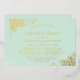 Dieses schöne Abendessen mit Probe besticht durch ein elegantes Design mit Goldfolie auf einem hellgrünen Hintergrund. Das Design zeichnet sich durch extravagante Skriptkalligraphie mit goldenen Spitzen-Gürteln und Wirbel in den Ecken aus. Es gibt Platz für Informationen über die Hochzeitsfeier und das Abendessen. Wunderbarer Weg, um dem Brautparty zu danken, während sie sicherstellen, dass sie alle Informationen haben, die sie brauchen.