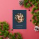 Eine elegante Verlobung-Ankündigungskarte mit einem Single-Foto, umgeben von goldenen Folienstars. "Wir sind Verlobt!" oder unten erscheint Ihre individuelle Ankündigung, zusammen mit Ihren Namen und weiteren Details.