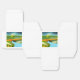 Abstrakte Landschaft eines Flusses unter einer Steinbrücke mit sanften Hügeln und einer goldenen Straße in kühnen Farben und Texturen.