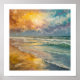 Dieses atemberaubende Ölgemälde fasziniert die atemberaubende Schönheit eines goldenen Sonnenuntergangs auf einem Sandstrand. Die lebhaften Farbtöne Orange, Gelb und lila malen den Himmel, während die sanften Wellen des Ozeans am Ufer einschlagen. Dieses Stück wird sicher eine Touch der Ruhe und Gelassenheit zu jedem Zuhause oder Büro hinzufügen.