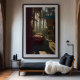 Treten Sie ein in eine Szene direkt aus einem Hollywood-Klassiker mit diesem atemberaubenden, stimmungsvollen Foto. Das goldene Morgenlicht strömt durch die mächtigen Palmen und wirft lange, dramatische Schatten über eine moderne Auffahrt aus der Mitte des Jahrhunderts. Ein Vintages, rotes Cabrio wartet auf Sie, glänzt im unheimlichen Sonnenaufgang, während ein einsames, verworfenes Rot-Ferse-Tipp auf eine Geschichte von glamourösen Nächten und geheimnisvollen Abfahrten. Die reiche, kinematrische Qualität und die warmen, nostalgischen Farben machen dies zu einem faszinierenden Stück für jeden Raum. Es ist eine perfekte Hommage an klassische Autos, Design Mitte des Jahrhunderts und Kunst, die die Fantasie entfacht.