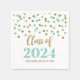 Abschluss-Servietten für die Klasse 2024 mit glamourösem Gold und türkisfarbenem Konfetti-Muster.