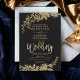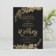 Goldene, typografische, schwarz blumengeschmückte Hochzeit mit handgemalten Blattgold. Der schwarze Hintergrund ist vollständig anpassbar