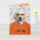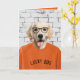 Golden Retriever Hund in orangefarbenem T - Shirt und schwarze gerahmte Brillen auf Backstein Wand Hintergrund für Ruhestand Glückwünsche.