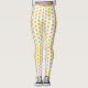 Goldenes vierblättriges Kleeblattmuster auf weißen Leggings.
