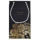 Elegantes Vintages Blumendesign mit Paarnamen in glänzenden Imitaten Goldfolie auf rustikalem schwarzen Hintergrund, schick und romantisch, ideal für moderne Hochzeiten im Herbst und Winter. Sehen Sie sich alle passenden Stücke in der Sammlung unten an.