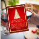 Unsere Golden Christmas Tree Foil Card zeigt ein luxuriös aussehendes goldenes X'mas Set (in Goldfolie gedruckt) vor einem roten Hintergrund mit Schneeflocken und umgeben von einer Goldfolie. Alle Texte sind vollständig anpassbar.