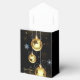 Weihnachten Golden Ornaments Shiny Stars Black Gefälligkeitsboxen. Einzigartiges, schönes, stilvolles Design. Leicht personalisiert zu sein. Schriftart Stil, Größe und Farben können geändert werden. Matching-Elemente verfügbar.