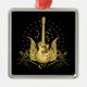Musikalische Ausrüstungsbeschreibungen der Fantasieart, die eine goldene winged Gitarre mit Blättern und Musiknoten betont.