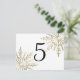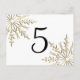 Goldene Winterschneeflocken auf weißer Tischnummer