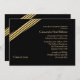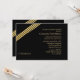 Eine einfache, aber raffinierte Einladung mit einer Drehung aus goldfarbenen und schwarzen Streifen, die an der Ecke mit einem schwarzen Hintergrund verziert ist.Die Karte ist leicht anzupassen mit Ihrem Wortlaut, Schriftart, Schriftart Farbe und Auswahl von sechs Papiertypen.